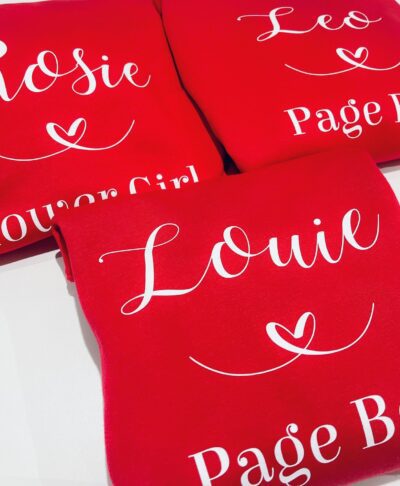 Printed with her name and wedding role, it’s the ideal way to include your younger bridal party members in the celebration while keeping them warm and stylish.
