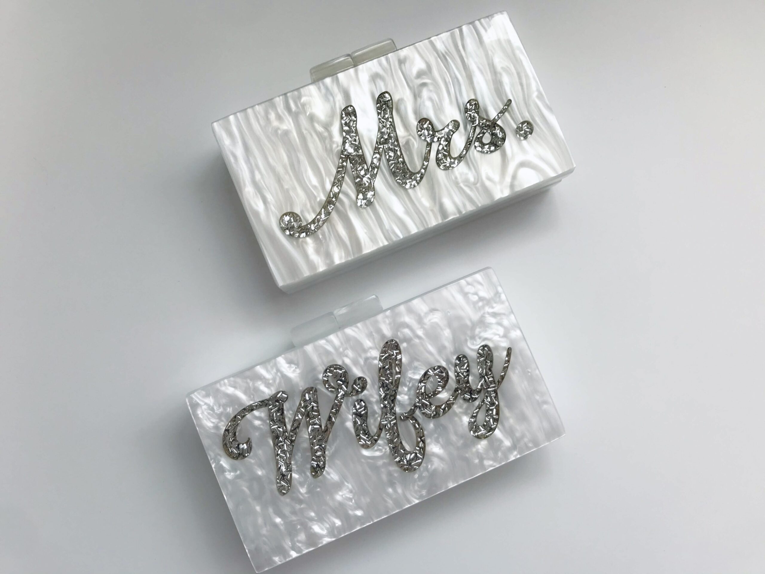 Celebrate your new chapter in style with our stunning Mrs Pearl Clutch Bag – the ultimate bridal accessory for your wedding day, hen party, or honeymoon. Handcrafted in delicate pearl and featuring the elegant word “Mrs” across the front, this clutch is both a statement piece and a keepsake every bride will treasure.