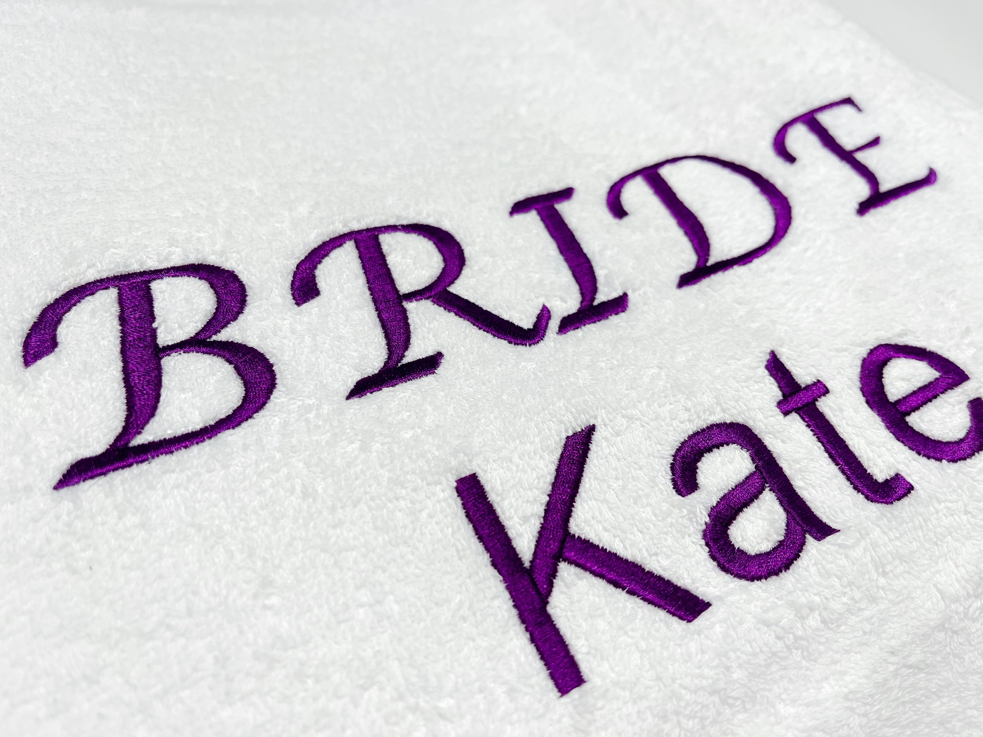 Whether you’re preparing for your wedding day, lounging on your honeymoon, or treating someone special, this embroidered towelling robe is the ultimate in comfort and elegance.