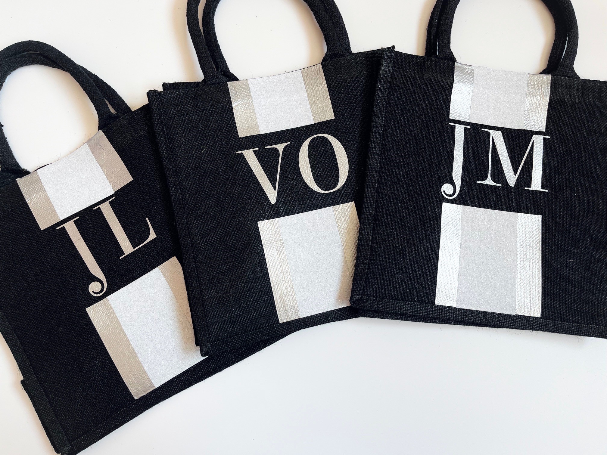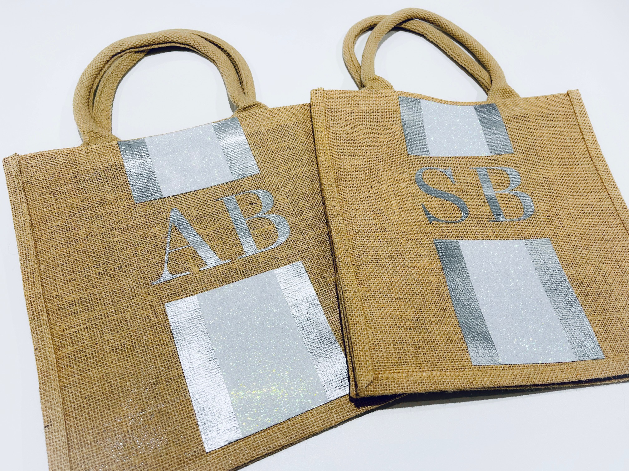 Bring together elegance, personality and eco-friendly style with our Personalised Initial Jute Bag — a thoughtful accessory perfect for weddings, bridesmaids, hen parties, or just everyday use. Crafted from natural jute, with your chosen initial and optional name or date, this bag makes a lasting impression.