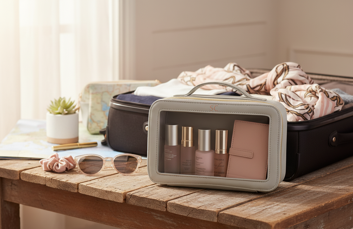 Personalised Leather Look Clear Travel Case – Stylish & Practical for Brides, Bridesmaids & Travel Lovers