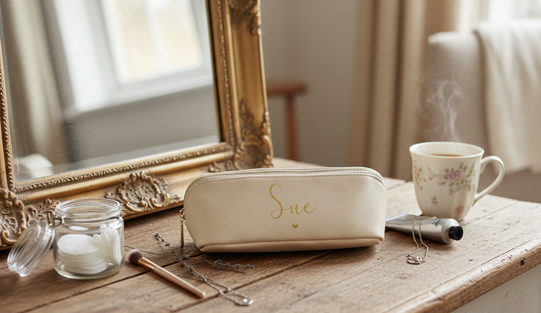 Personalised Leather Look Open Flat Mini Accessory Case – Custom Compact Bag for Makeup, Jewellery & Essentials