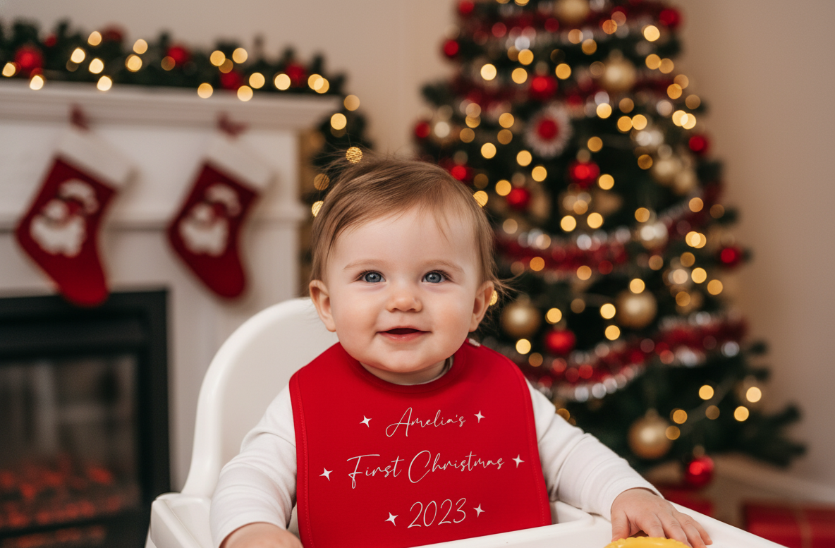 Personalised My First Christmas Bib – Keepsake Baby Bib for a Magical Milestone