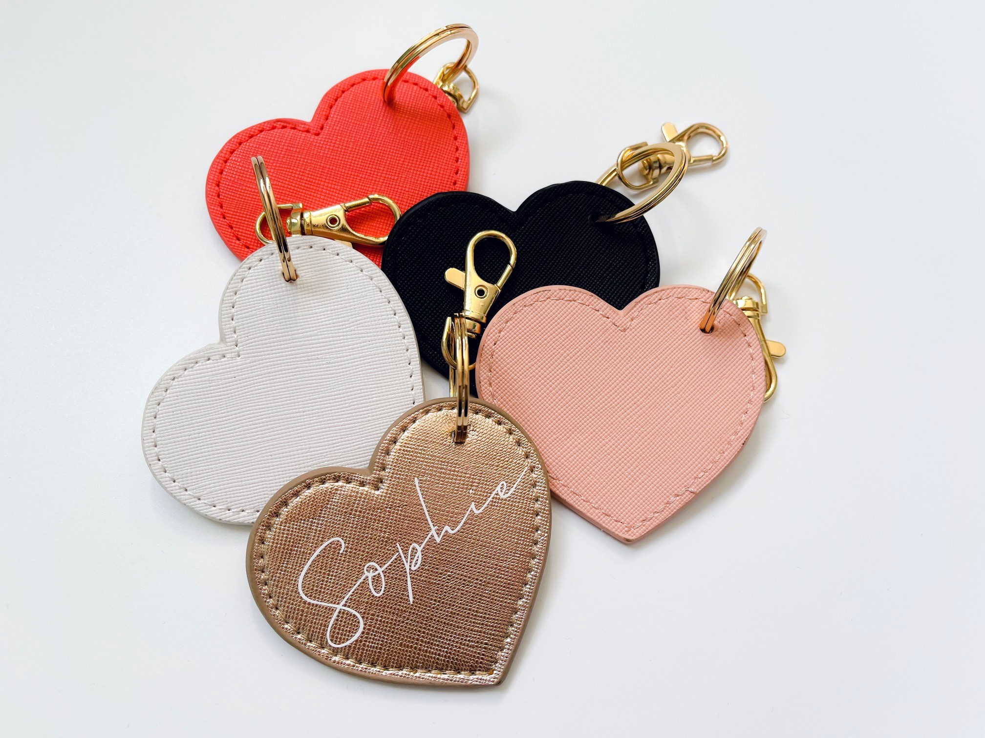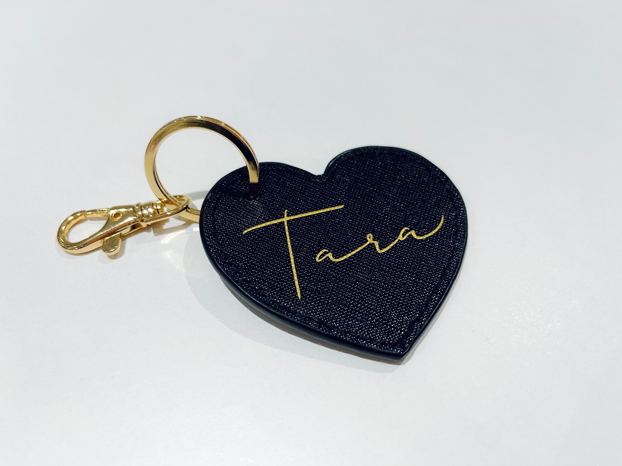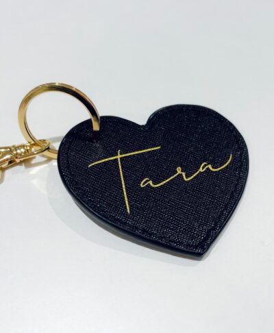 Personalised Name Leather Look Heart Keyring