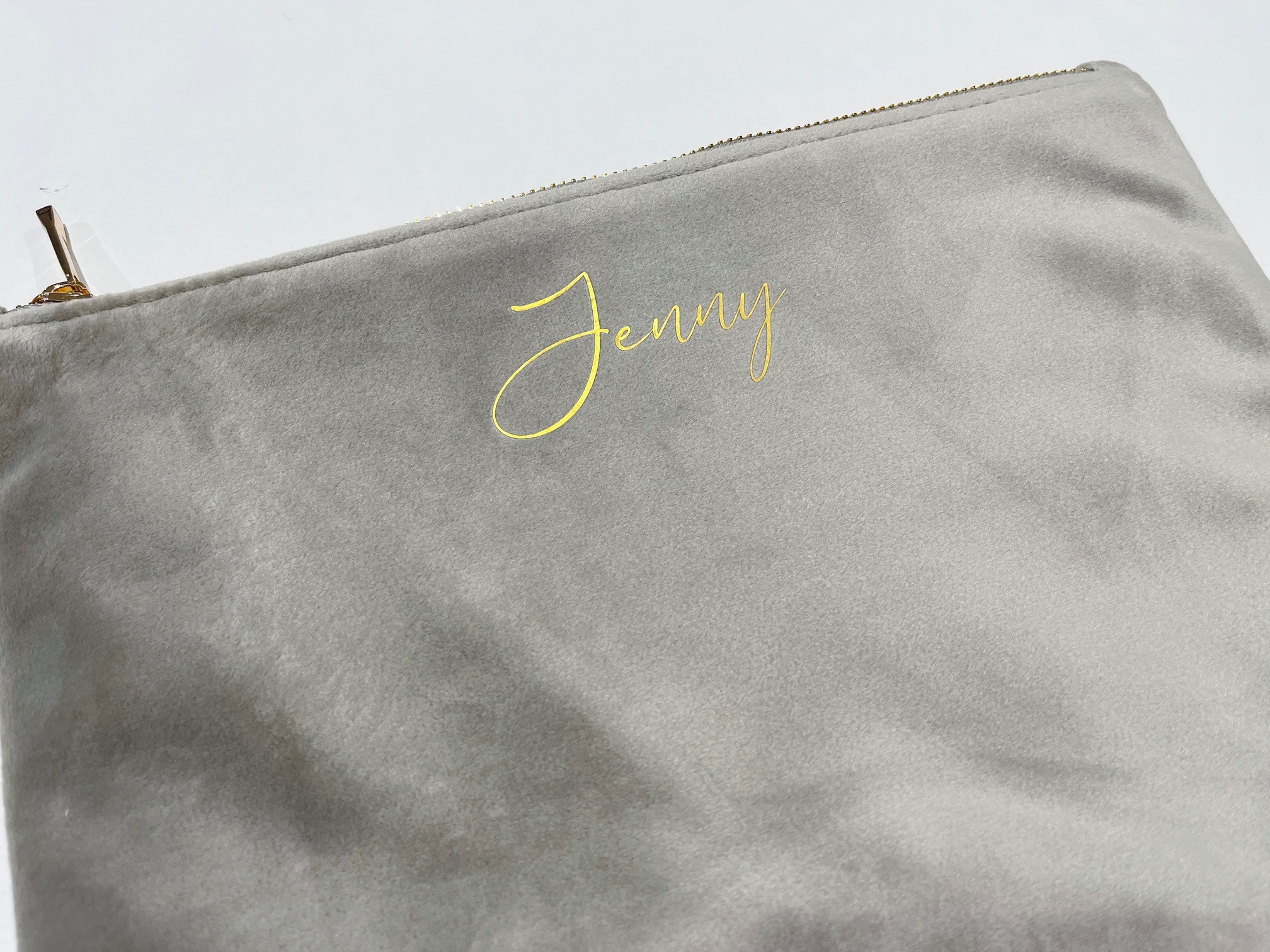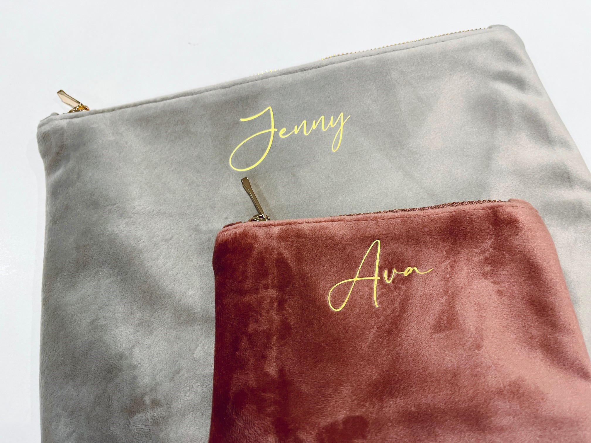 Add a touch of luxury and sophistication with our Personalised Velvet Clutch Pouch. This stunning velvet pouch is perfect for a variety of occasions, from weddings and bridal showers to special events or as a thoughtful gift. Crafted from soft, high-quality velvet, each pouch is personalised with your chosen name in elegant script, creating a truly unique accessory.