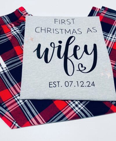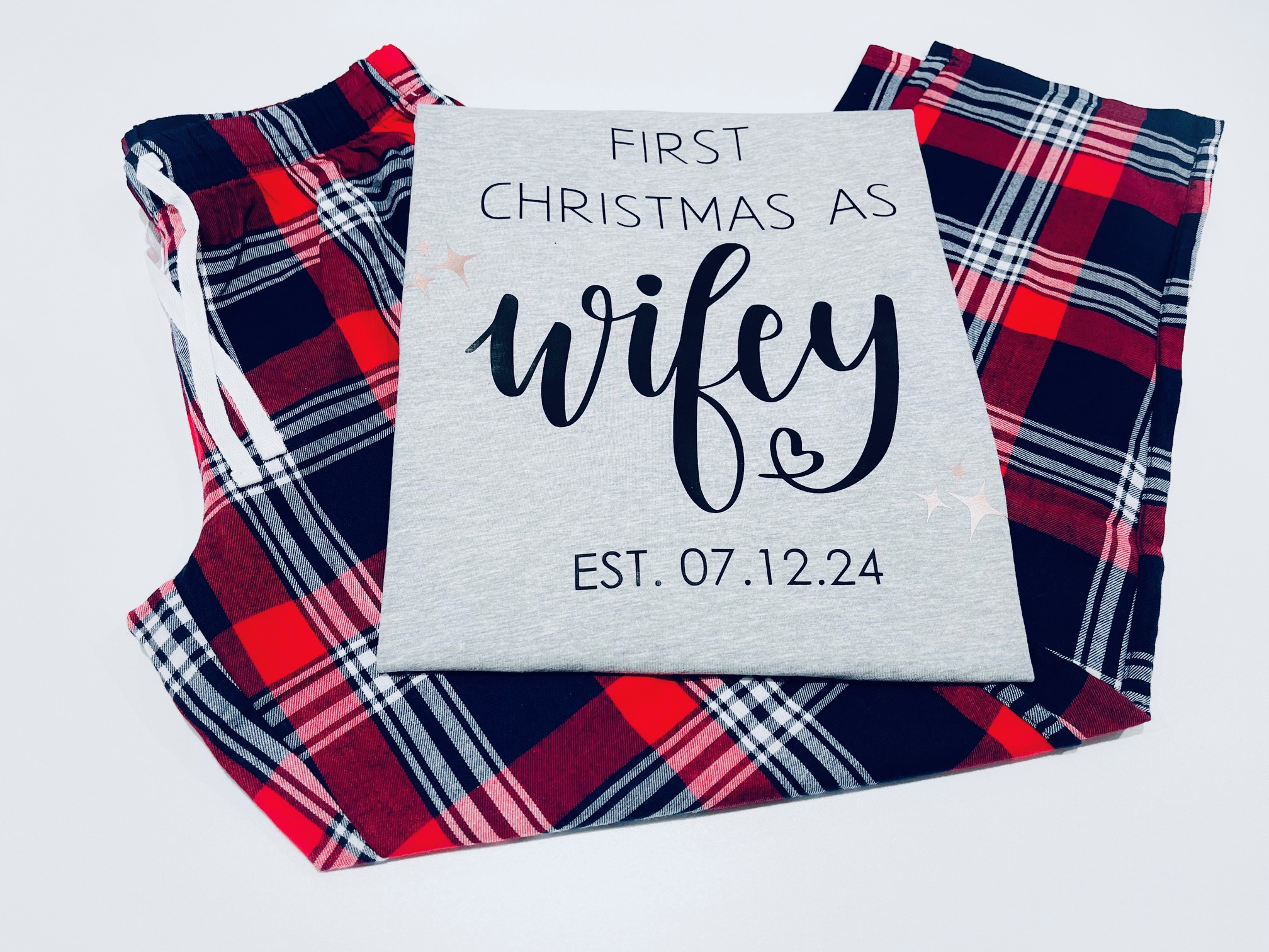 Women’s First Christmas As Wifey Tartan Pyjamas